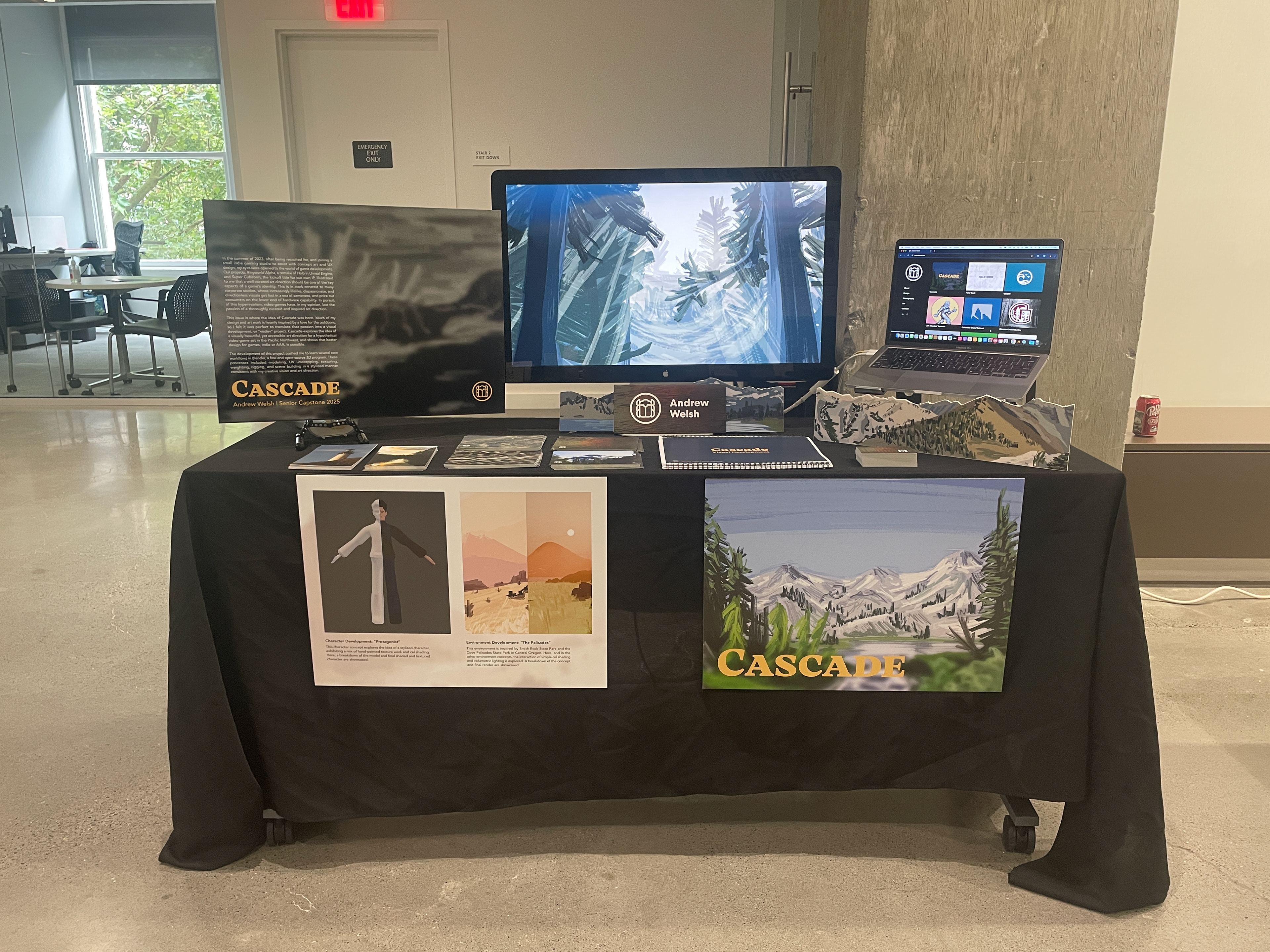 From this issue, the idea of Cascade was born. Much of my design and art work is heavily inspired by a love for the outdoors, so I felt it was perfect to translate that passion into a visual development, or “visdev” project. Cascade explores the idea of a visually beautiful, yet still accessible art direction for a hypothetical video game set in the Pacific Northwest, and shows that better design for games, indie or AAA, is possible.